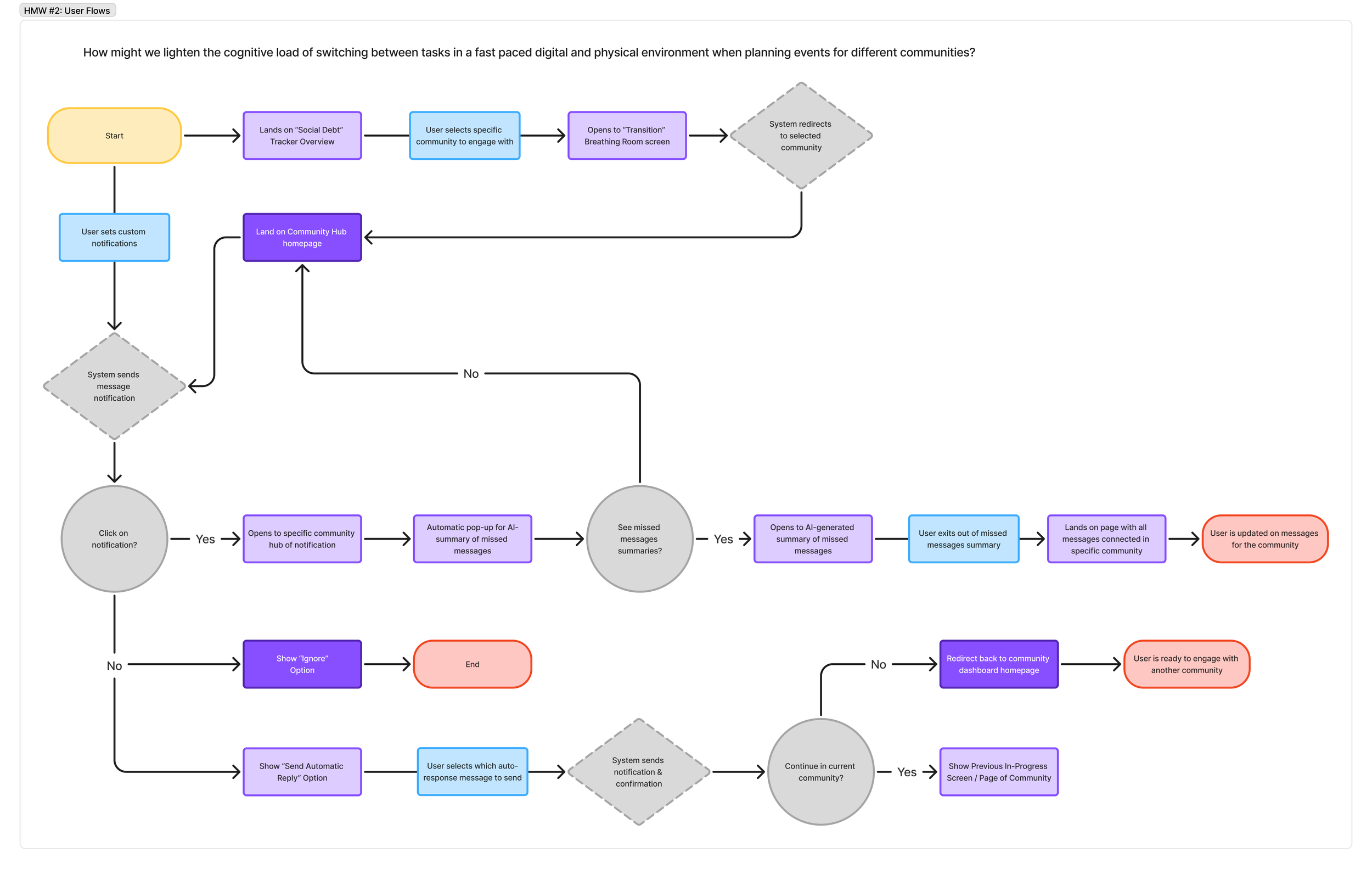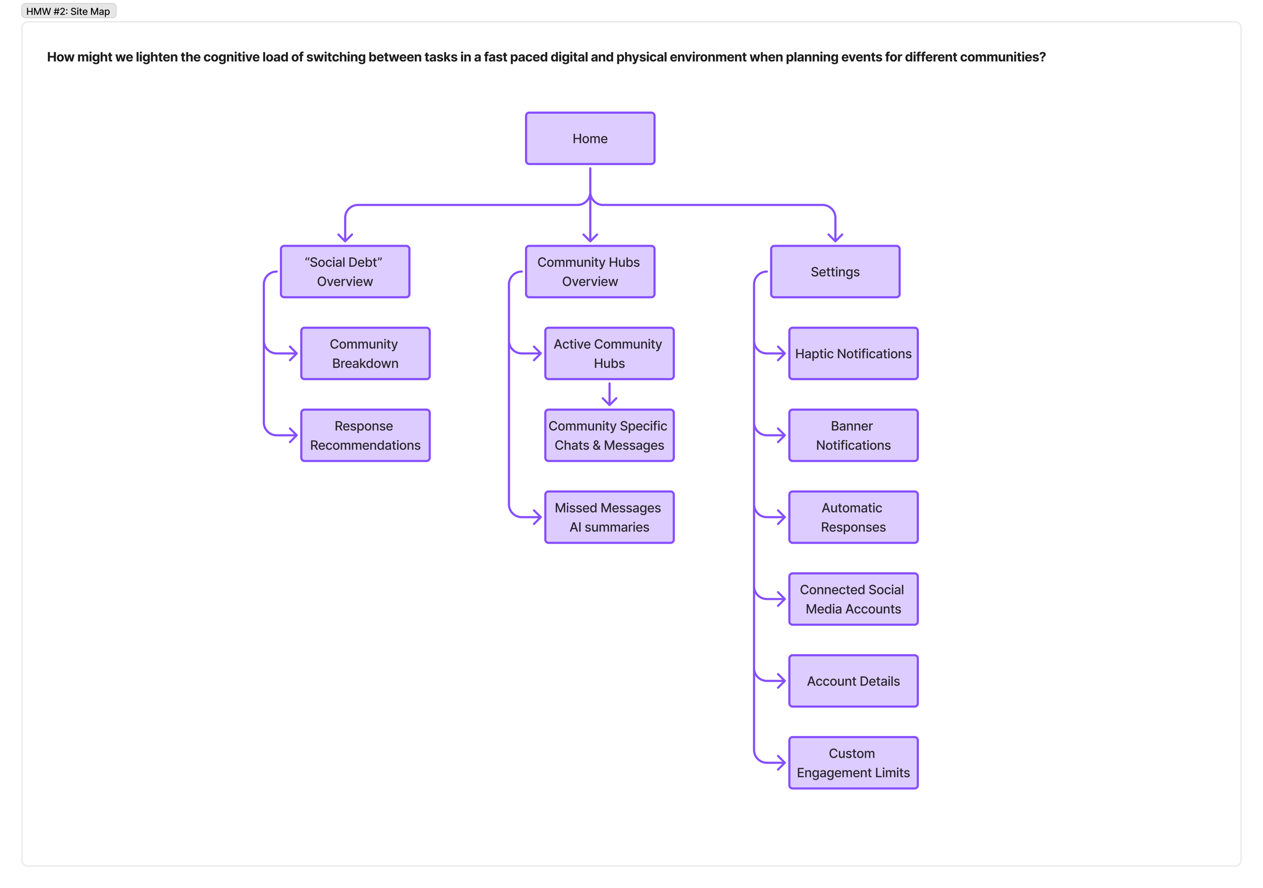 How Might We #2: How might we lighten the cognitive load of switching between tasks in a fast paced digital and physical environment when planning events for different communities?