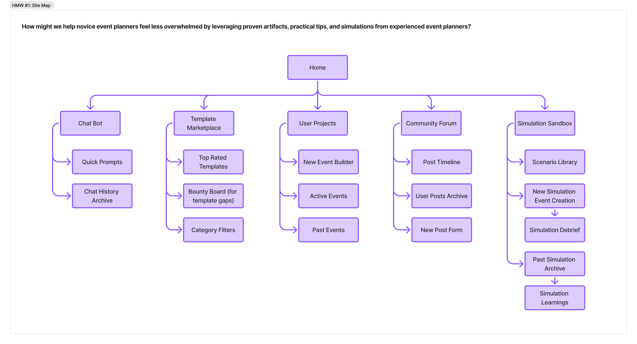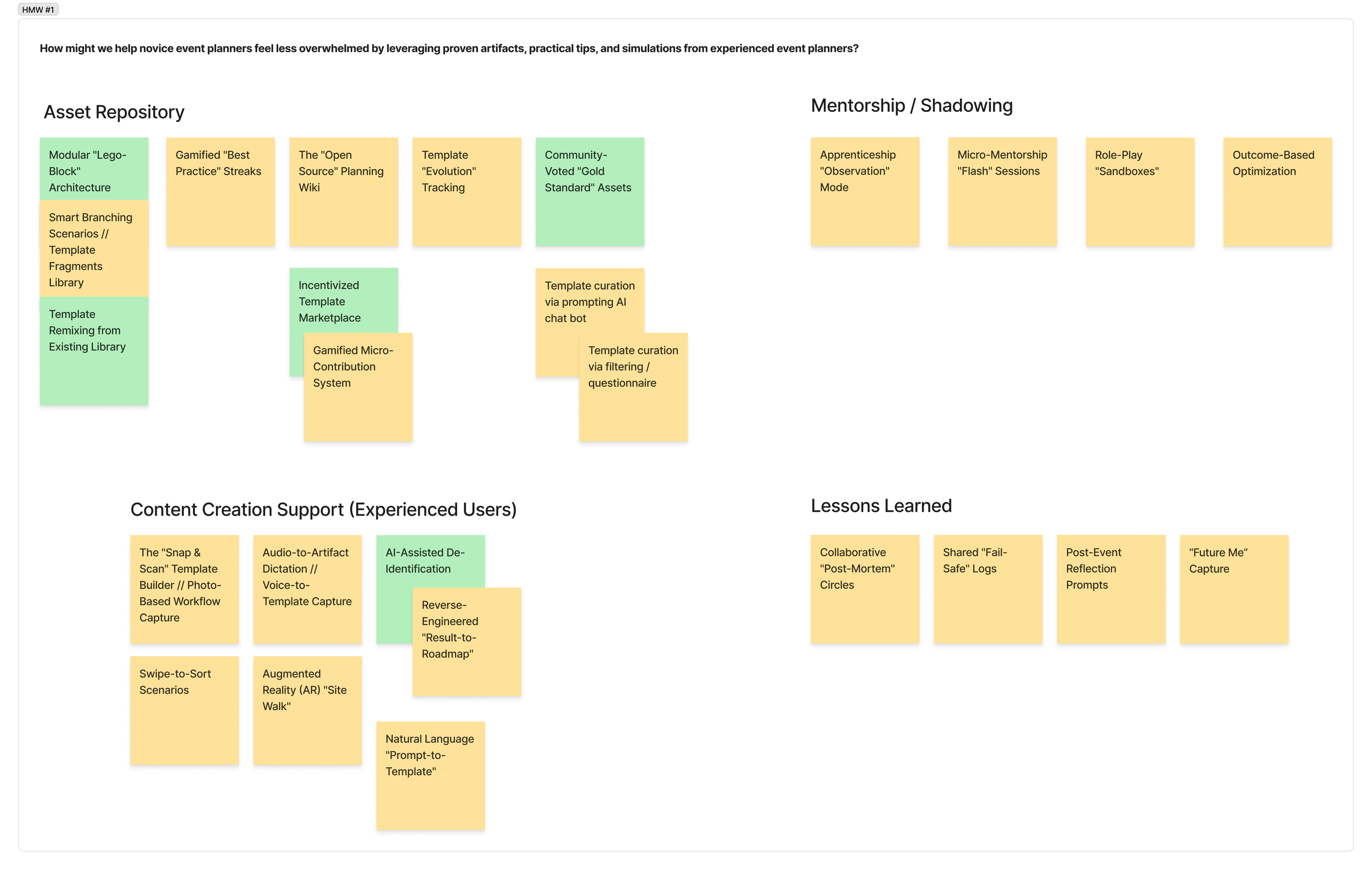 How Might We #1: How might we help novice event planners feel less overwhelmed by leveraging proven artifacts, practical tips, and simulations from experienced event planners?