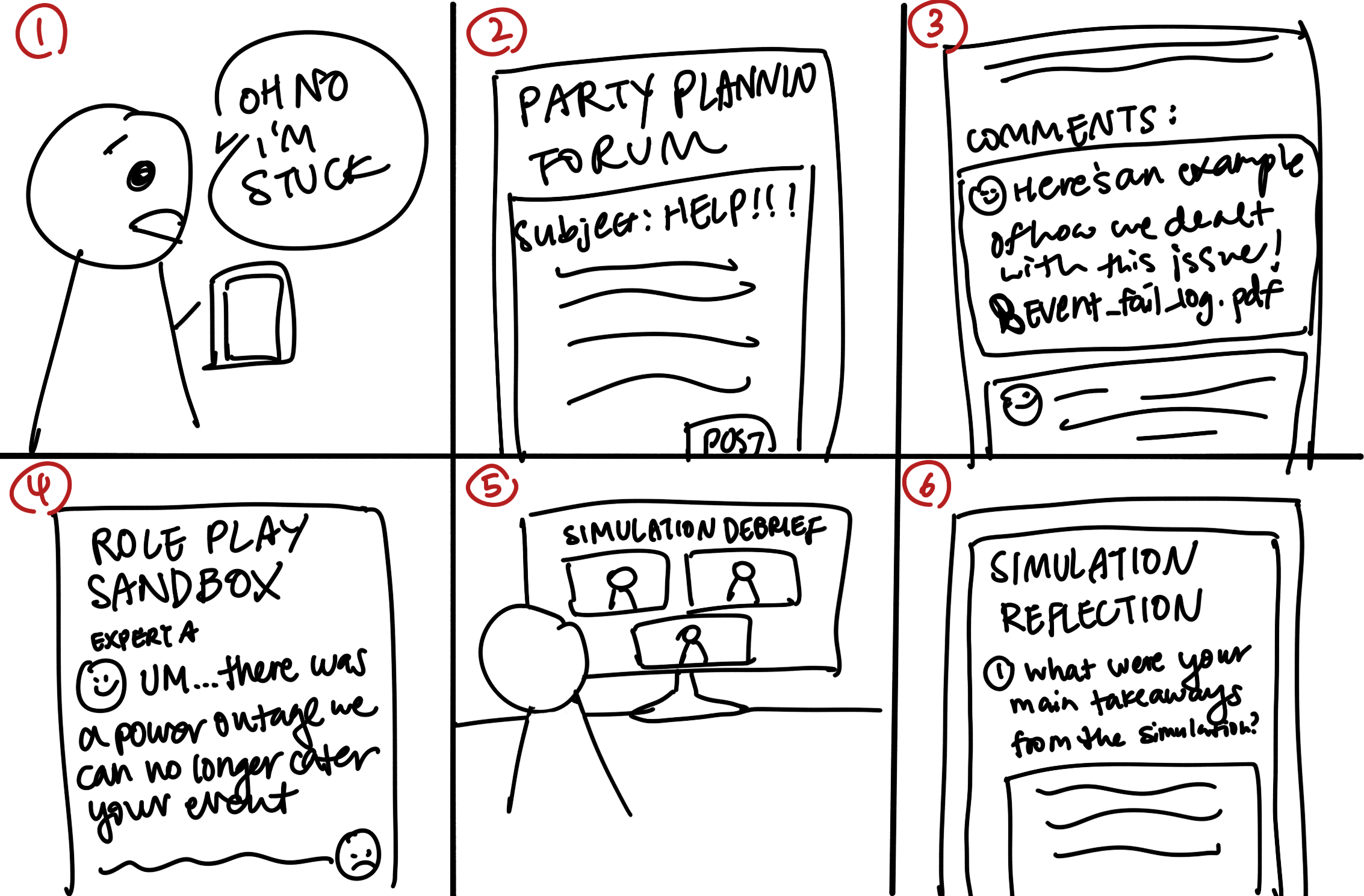 Novice users capture notes post-simulation to keep in mind for actual event day